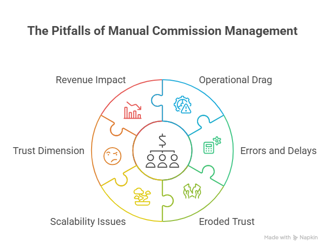 Manual commission management also introduces a compounding risk: as your team grows, the complexity scales faster than your capacity to manage it. What works for a 10 person team becomes unmanageable at 50. The cracks do not close over time, they widen.