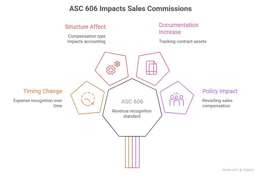 ASC 606 impacts how companies treat the costs associated with earning revenue, including sales commissions. Under the standard, many commissions must be capitalized and amortized over the expected period of benefit rather than expensed immediately. This significantly changes how organizations account for and track compensation.