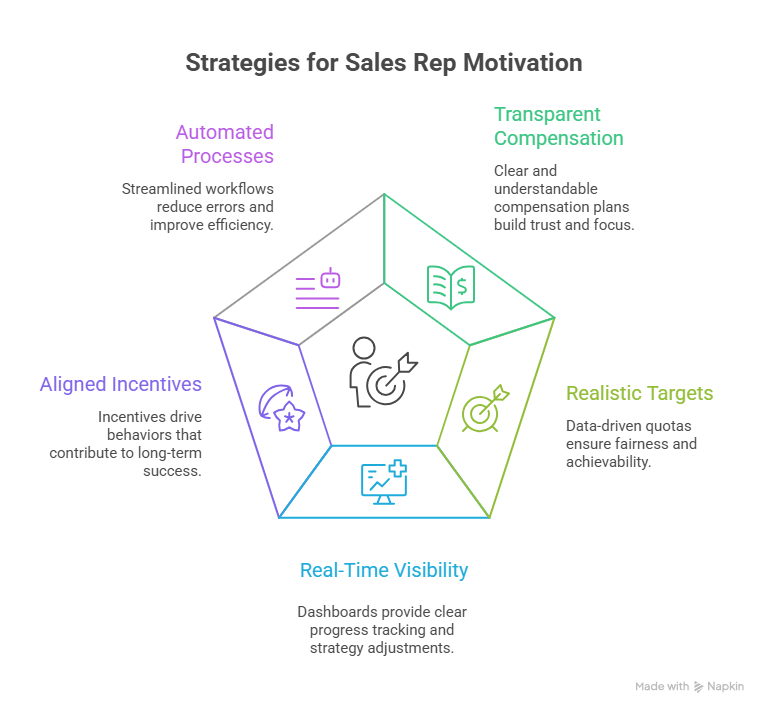 Companies can improve motivation by creating transparent compensation plans, setting realistic targets, providing real time performance visibility, and aligning incentives with business goals. Using automation and AI tools also helps reduce confusion and build trust among sales reps.
